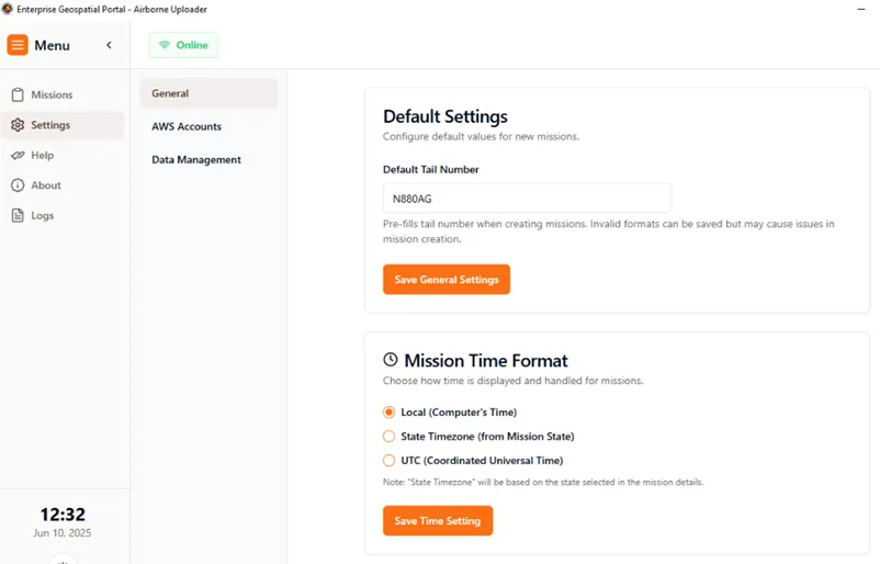 If you have been contracted to provide data to EGP or wanting to use the application for uploading to Intterra please reach out to us for where you can download the application. This is a standalone application and can be run on any non-government Windows computer. We are in the process of getting a Technical Approval for federal equipment in future releases. You will receive credentials to be able to upload data to the EGP Airborne Archive. This setup process should take under 5 min to get up and running. Any issues please contact our staff for assistance.